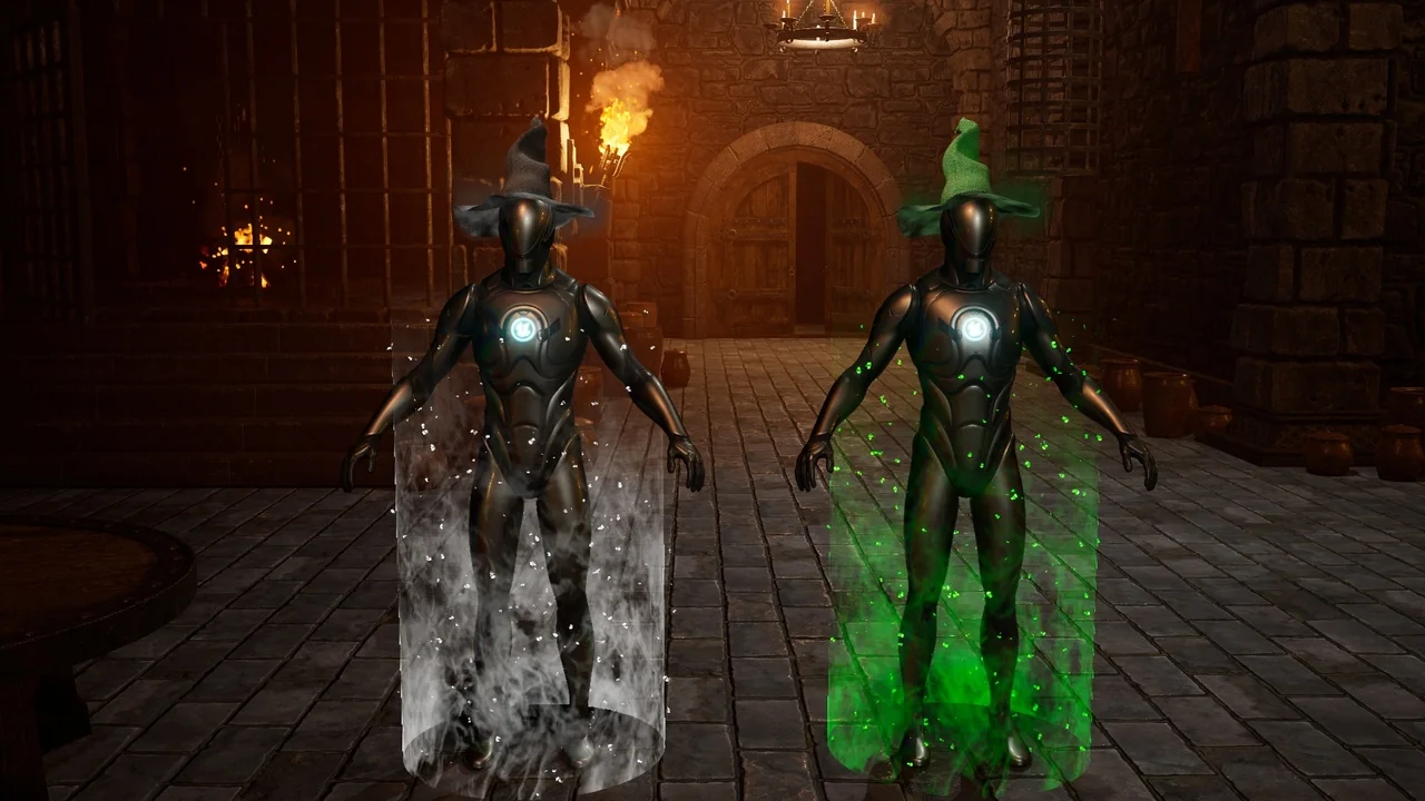 The pack also provides advanced visual controls through Fresnel parameters. Users can adjust the Fresnel exponent and fraction to fine-tune the in and out opacity. This helps in achieving the perfect level of brightness for each magical effect. Additionally, the included wizard hat mesh features its own realistic normal map for enhanced surface detail.