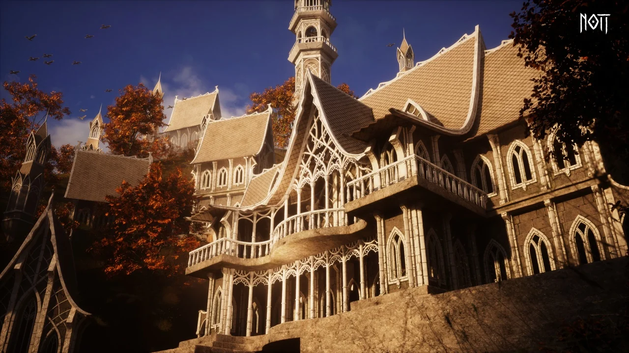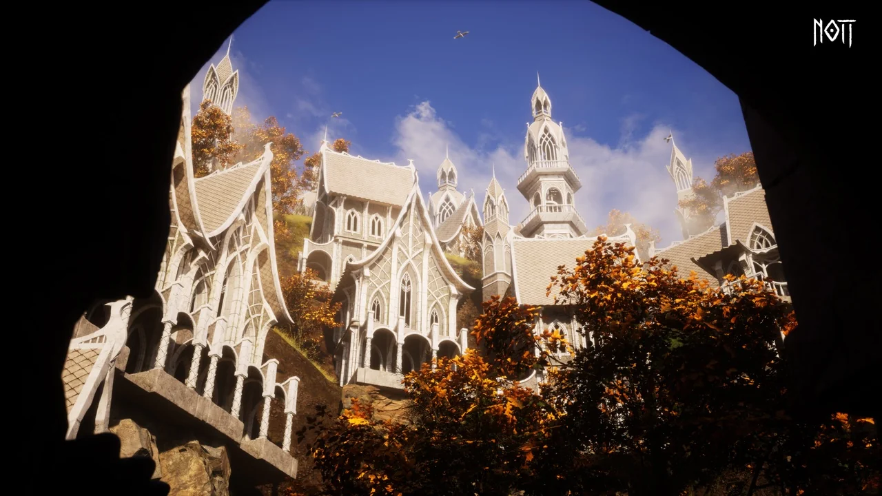 In a real workflow, this is the kind of asset that can carry the built structure of an elven district, a castle frontage, or a fantasy town scene while leaving room for surrounding dressing and world-building. The most useful takeaway is simple: it gives teams a modular architectural base with Nanite-ready meshes, snap-friendly pieces, custom collision, and adjustable weathering, all centered on UE5 scene assembly.