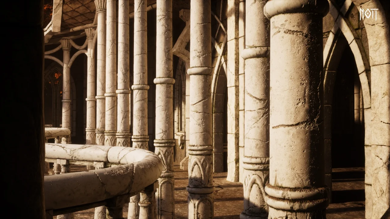 For production, that means the asset can move through several stages without becoming locked into one final appearance too early. A level artist can use the same architecture for blockout, then shift the weathering and material response as the rest of the scene develops. That is especially useful in fantasy environments where age, damage, and dampness help define the story of the location.