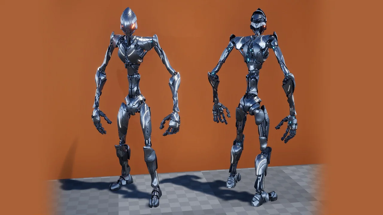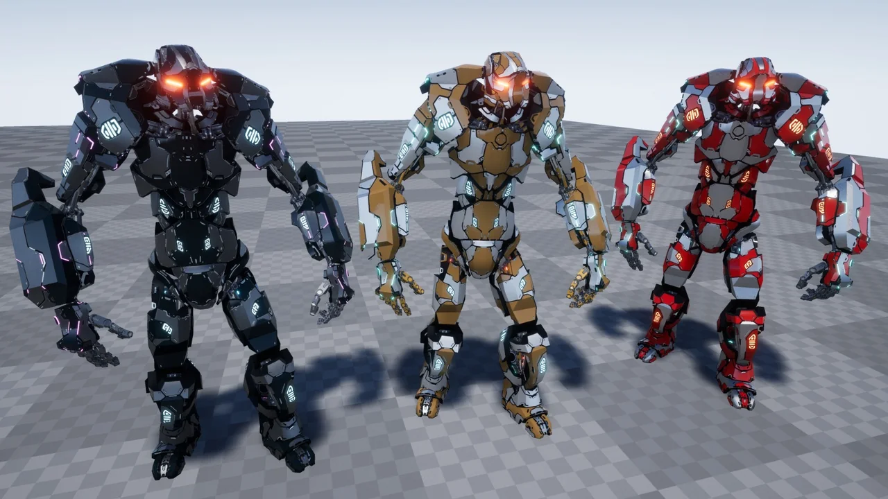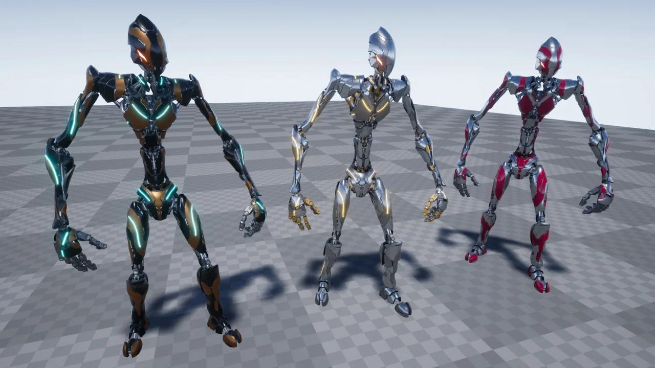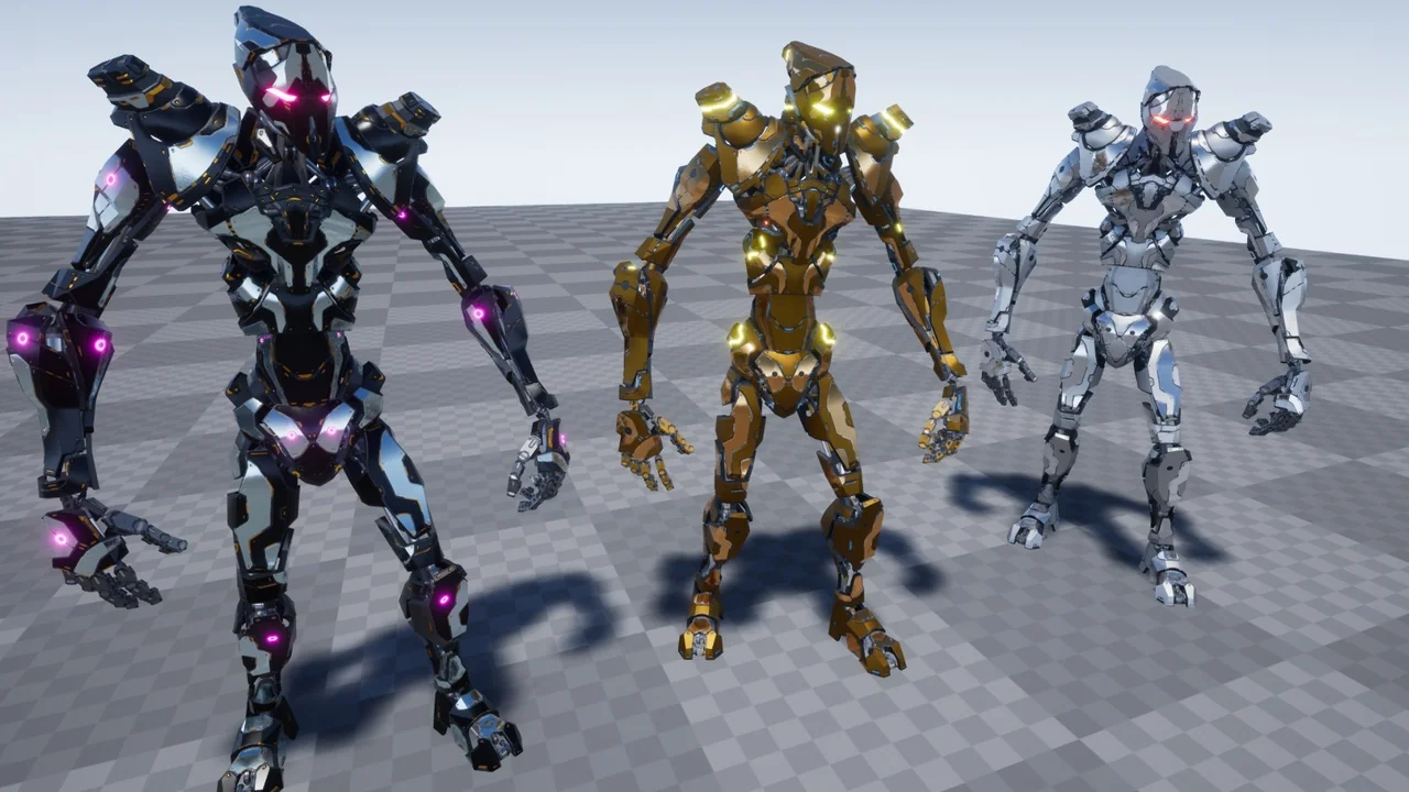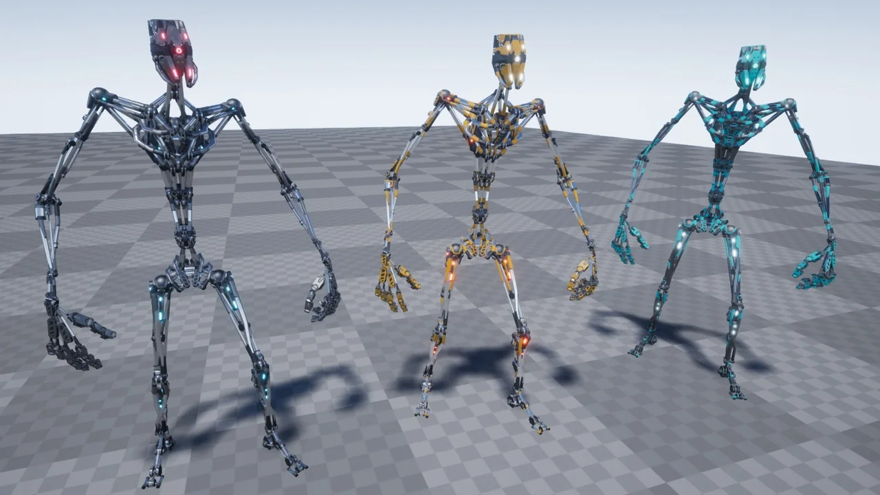 Furthermore, the materials are fully customizable. You can adjust the color, metallic, and roughness values with ease. In addition, the emissive settings let you control the glow of the drone’s sensors. As a result, you can match the character to your game’s specific lighting and atmosphere. Specifically, these adjustments help in creating different enemy tiers or factions within your world.