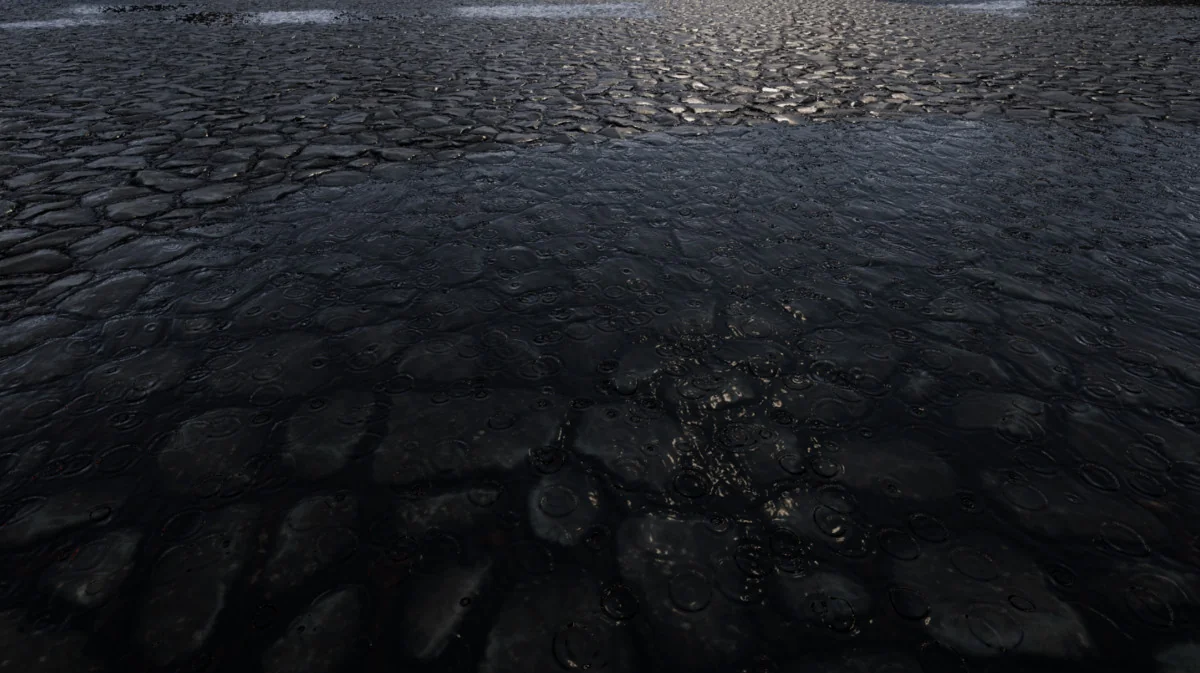 The main draw is how the shader handles changing surface conditions. Dynamic snow is included with lighting that behaves in a âsubsurface scatteringâ style. Dynamic puddles bring waves and rain ripples, while dynamic wetness adds rain streaks, flow, and splotches. These effects make the material react like an outdoor surface that has actually been exposed to weather, rather than a static shader with a single wet mask.