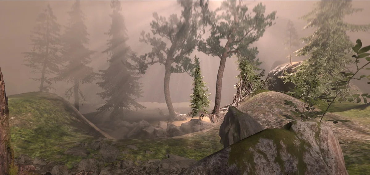 The foliage shader broadens that atmosphere work slightly. Wind adds motion to vegetation, while subsurface scattering helps leaves and similar surfaces respond in a way that fits natural outdoor scenes. Combined with fog and volumetric lighting, this gives forests and other plant-filled spaces a more coherent look.