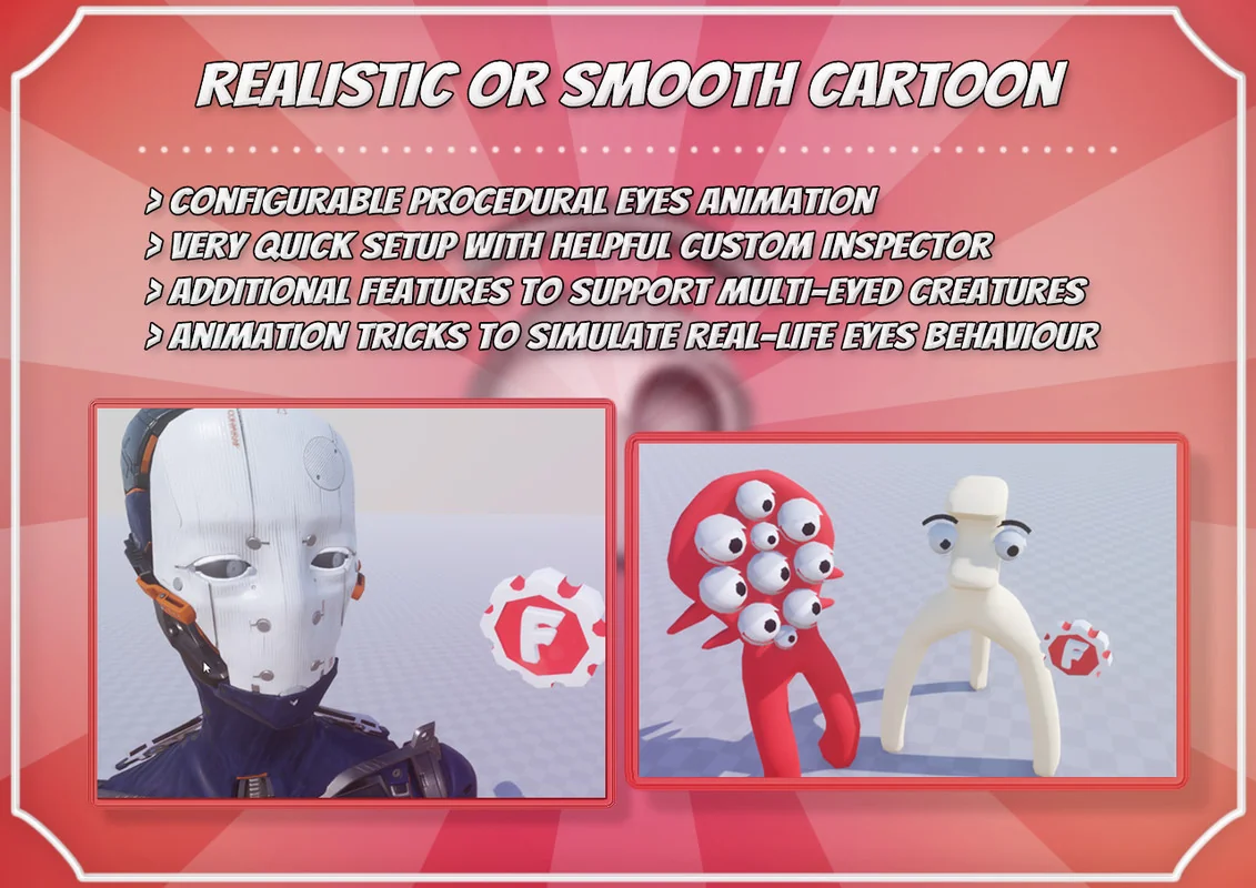 Eyes Animator is a specialized Unity component designed to bring life to character eye movements through procedural animation. This tool allows eye spheres to behave realistically or with a cartoon-like flair, depending on your project needs. Whether you are working on a human, a cyclops, or a spider, the component handles any number of eyes with ease. Small details like eye movement often make a significant difference in the perceived quality of a project.