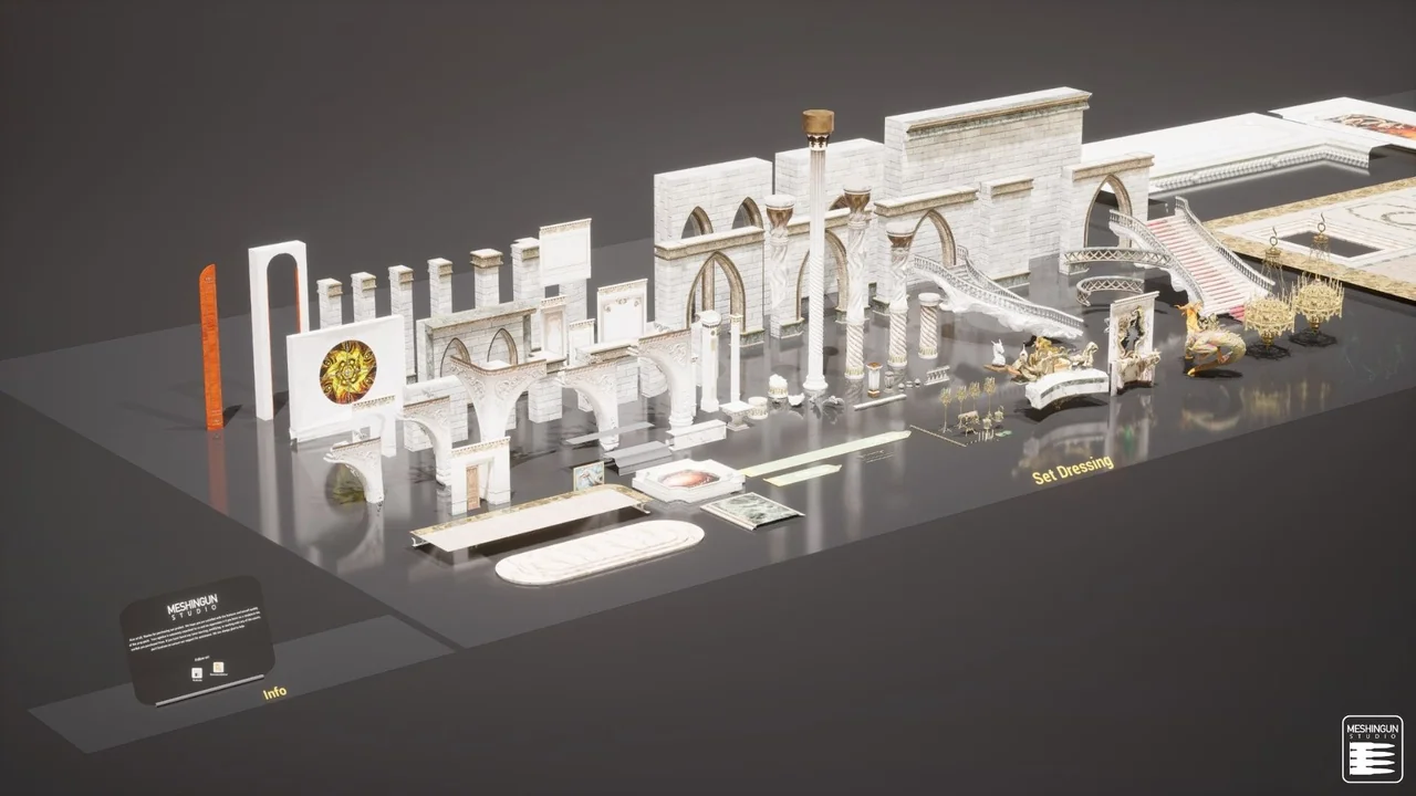The strongest use case is a project that needs a medieval fantasy location with a clear identity and a fast path to implementation. The presence of a showcase map helps establish the scene immediately, while the architecture pieces and meshes make it possible to extend or adjust the space as needed. For teams shaping a castle, shrine-like interior, palace area, or dark magical setting, the asset offers a ready visual base rather than a blank starting point.