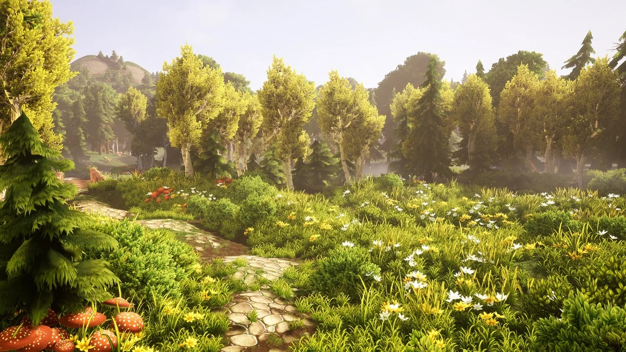Fantasy Forest Environment is a comprehensive collection of over 120 models designed for digital creators. Therefore, you can build beautiful and immersive sceneries for your game projects. This pack offers a vast array of trees, grasses, and flowers. Consequently, it allows you to create highly diverse environments with minimal effort.