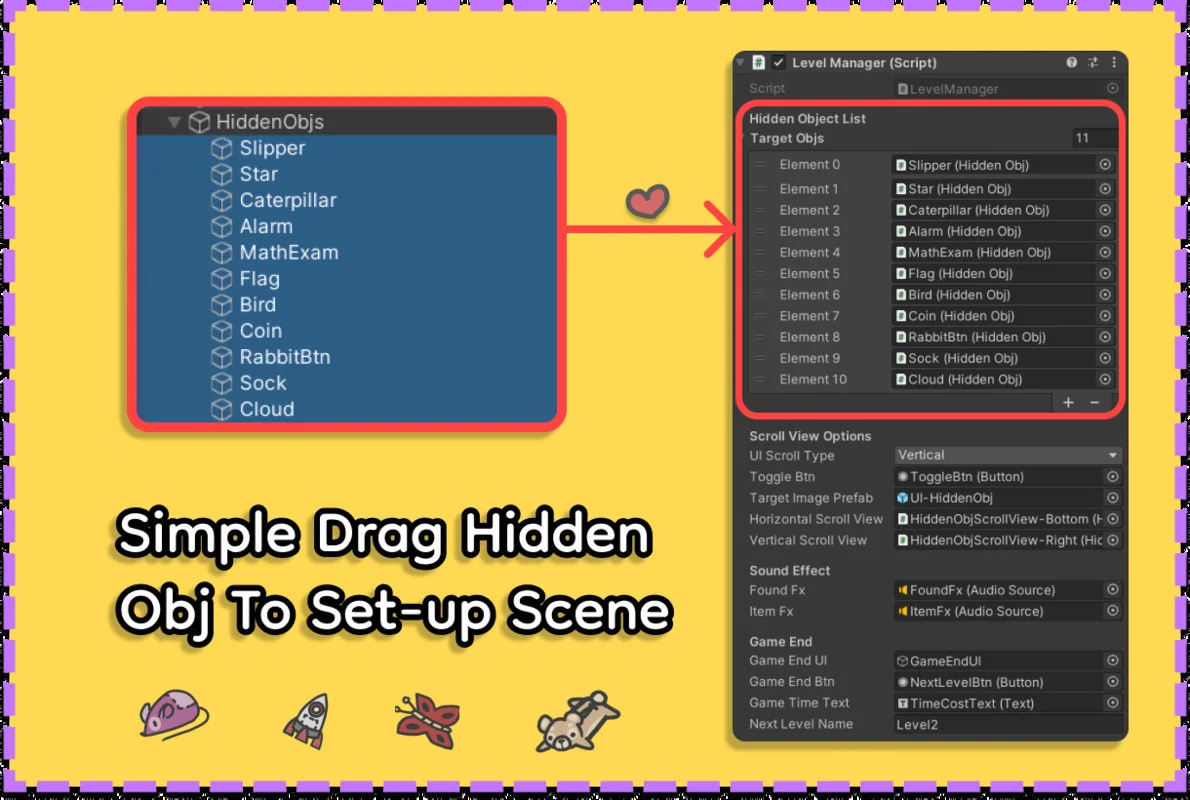 Managing how a player views the game world is handled through a built-in camera system that supports both panning and zooming. These effects are optimized for both desktop and mobile platforms, ensuring that the precision required for finding small objects is maintained across different hardware. The user interface is built using standard Unity UGUI elements and native animations, which makes the UI highly customizable. Developers can modify the aesthetics of the menus, buttons, and HUD elements to fit the specific art style of their project without fighting against a proprietary UI framework.