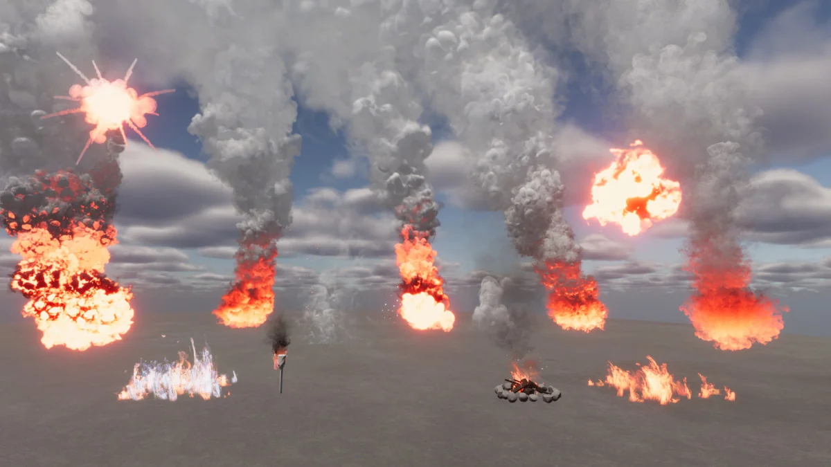 Fire pits, torches, embers, ashes, flames, and smoke plumes are the clearest matches for this resource. The included examples and prefabs point directly toward those kinds of scenes. If a project needs smoke that can shift with wind, fire that can be paired with supporting embers, or explosion-adjacent particle work with shader variation, this set has those components already grouped together.