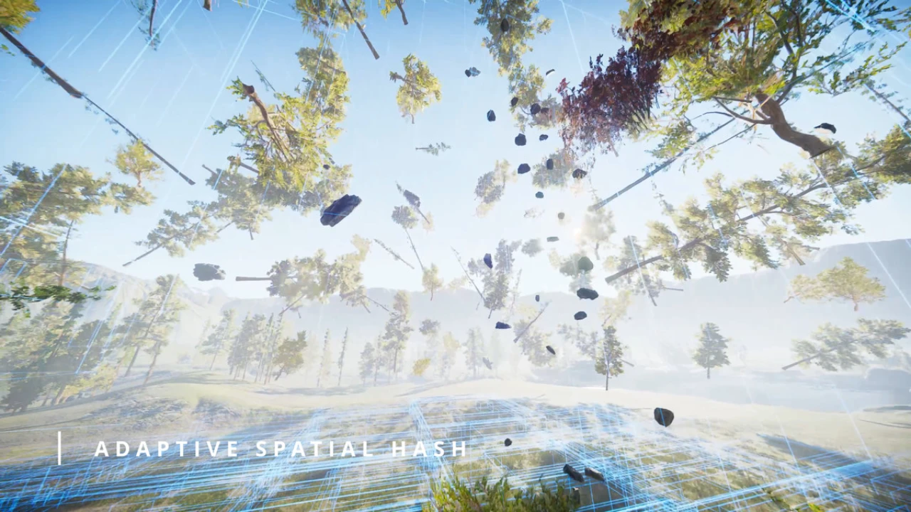 • Dynamic Spatial Hashing: Uses a scene-wide spatial hash for fast culling, runtime modifications, and efficient spatial queries.