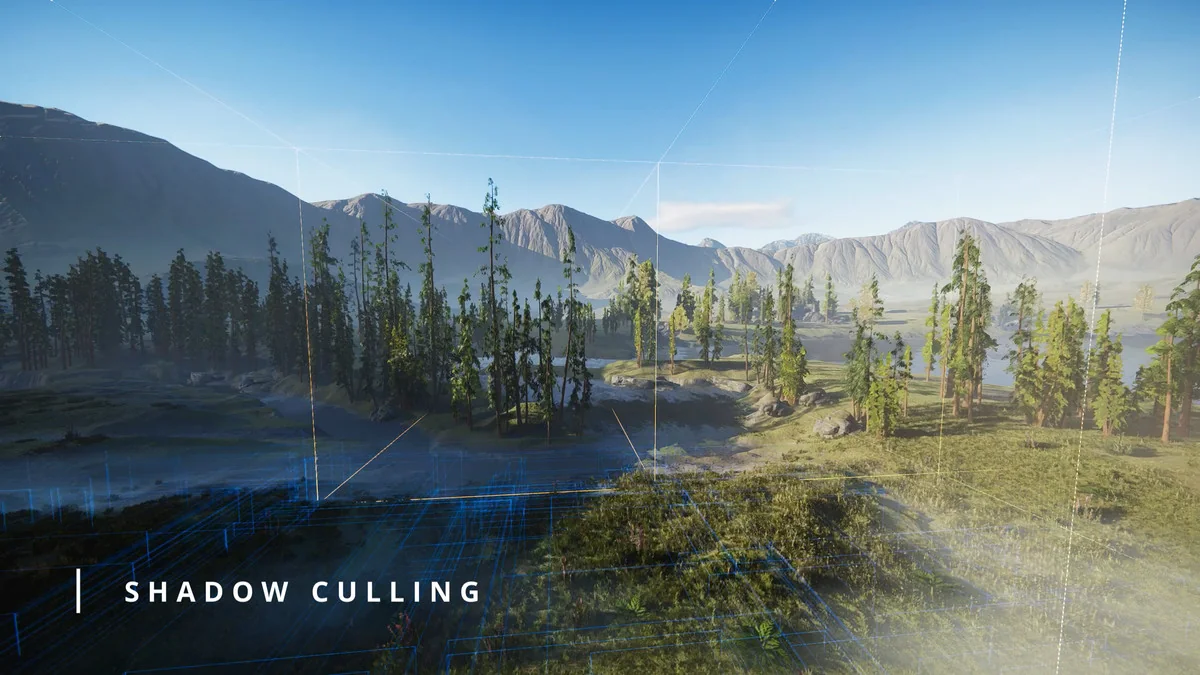 Shadow culling is handled per instance, with per-light and cascade split shadow culling aimed at reducing overdraw in shadow cascades. Additional lights are culled correctly with Forward+ or Deferred rendering paths. These details matter most in scenes where large numbers of instances have to stay active without turning every lighting pass into unnecessary work.