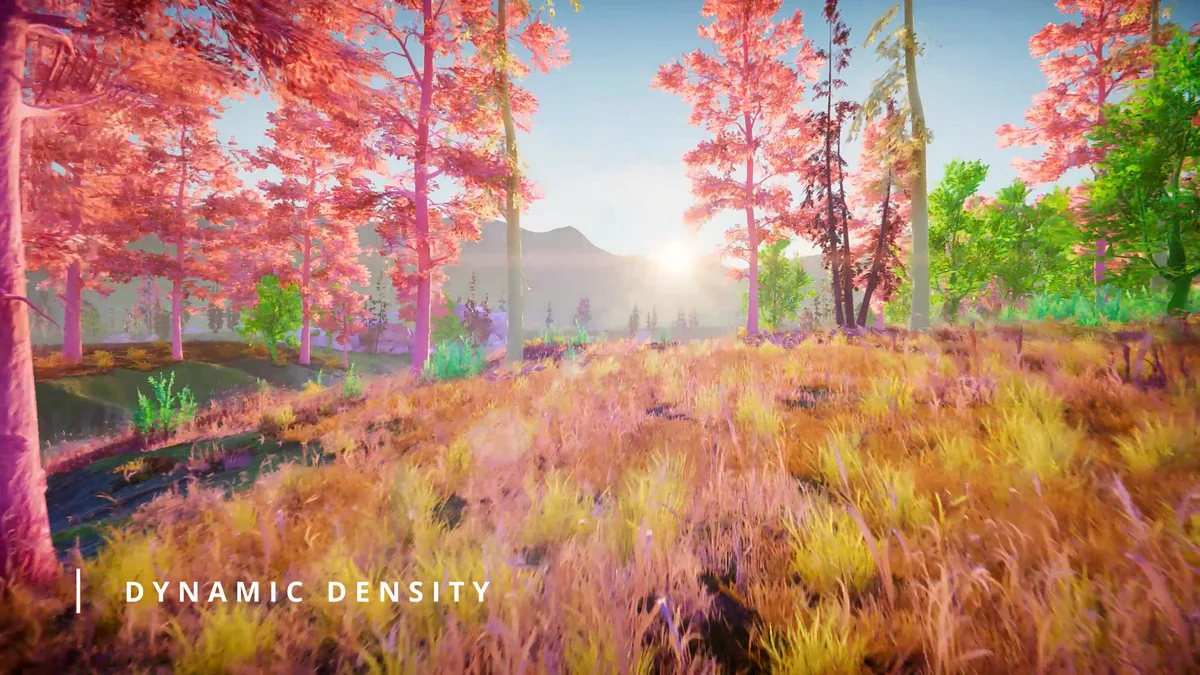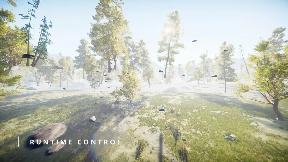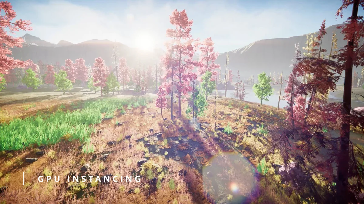 The global rendering approach is especially important for dense scenes. Rather than treating each cluster in isolation, Flora handles rendering in a way that avoids redundant draws. When many trees or repeated meshes are present, that global handling is what keeps the scene manageable as it scales up.