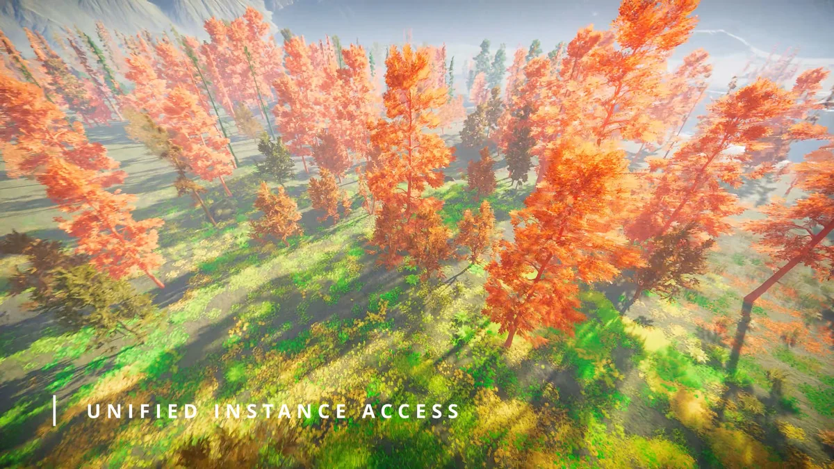 For terrain work, that means the foliage already living inside a terrain component does not need a separate or disconnected path. The data is taken straight from the terrain, then brought into the instancing system as the camera range changes. That keeps terrain trees and details in step with the scene without adding extra manual overhead.