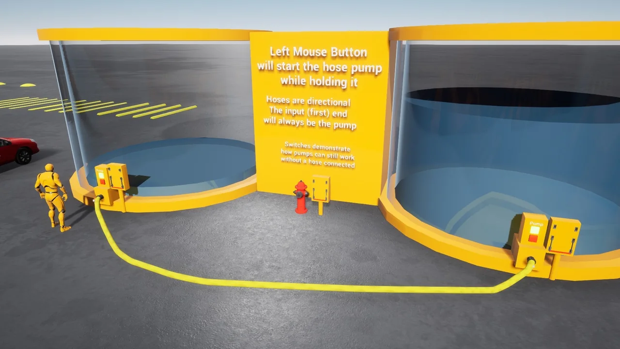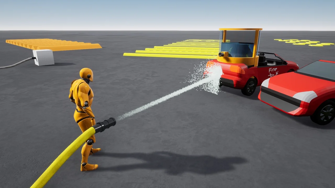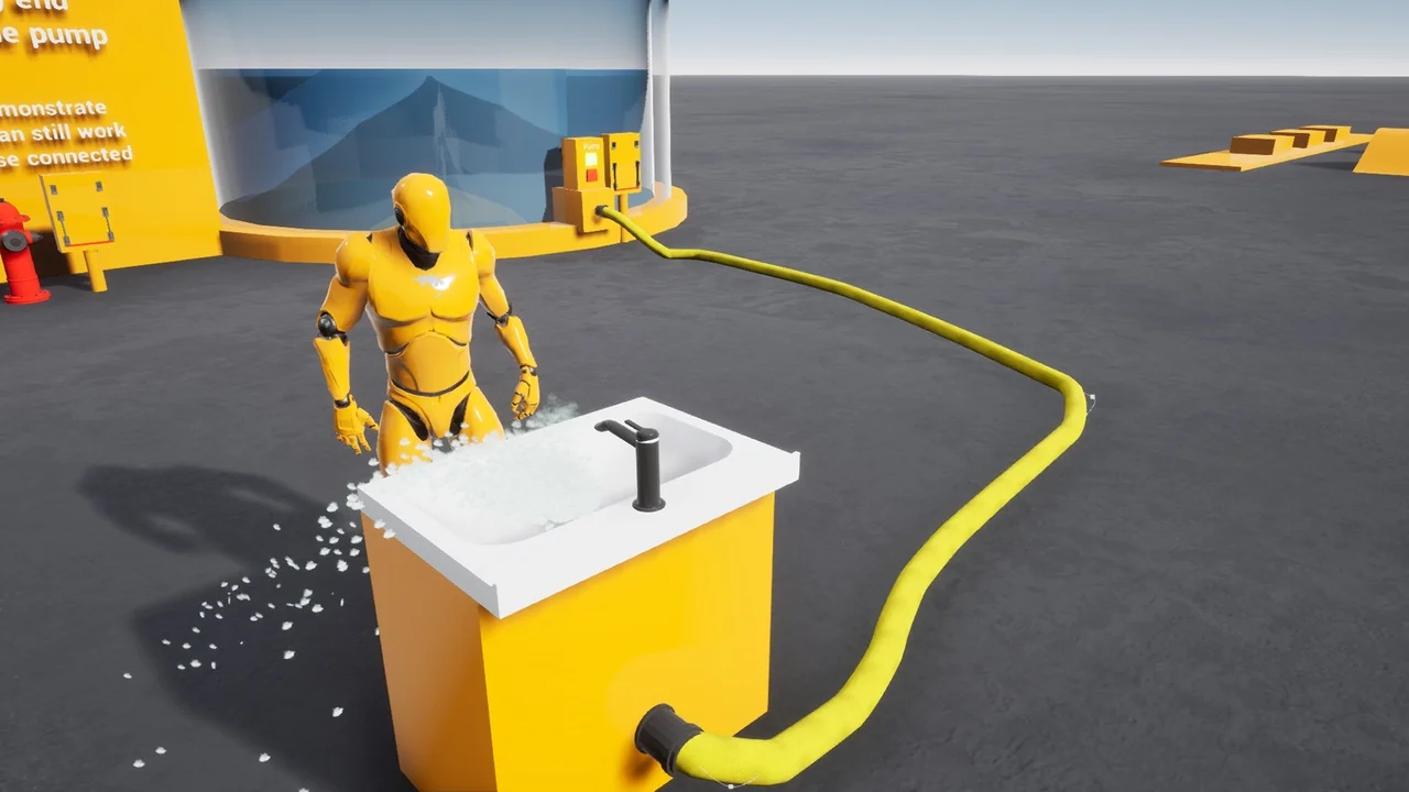 Realism is a key focus of the developer. Both ends of the hose spline simulate physics during use. This simulation adds a layer of authenticity while maneuvering the hose around the environment. Consequently, the interaction feels more natural for the player during gameplay.