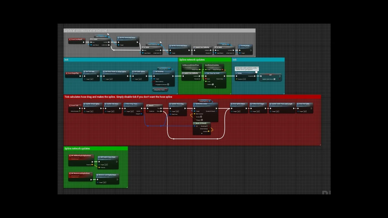 A core component of this tool is the hose spline actor. This actor includes a configurable mesh and material. Because of this flexibility, users can easily create child actors for various hose types. Furthermore, the hose dragging system allows players to pull the hose out indefinitely. The system also tracks movement, so the hose is picked up as you walk back over it.