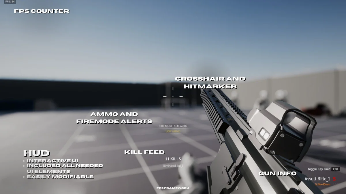 The firearm system is one of the most detailed components of the framework. It is built to be modular, enabling the creation of diverse weapon types. Developers can define custom spray patterns for firearms, which provides a level of precision and control over the shooting mechanics. These patterns are intended to enhance the gameplay experience by giving players predictable or skill-based recoil mechanics to master.