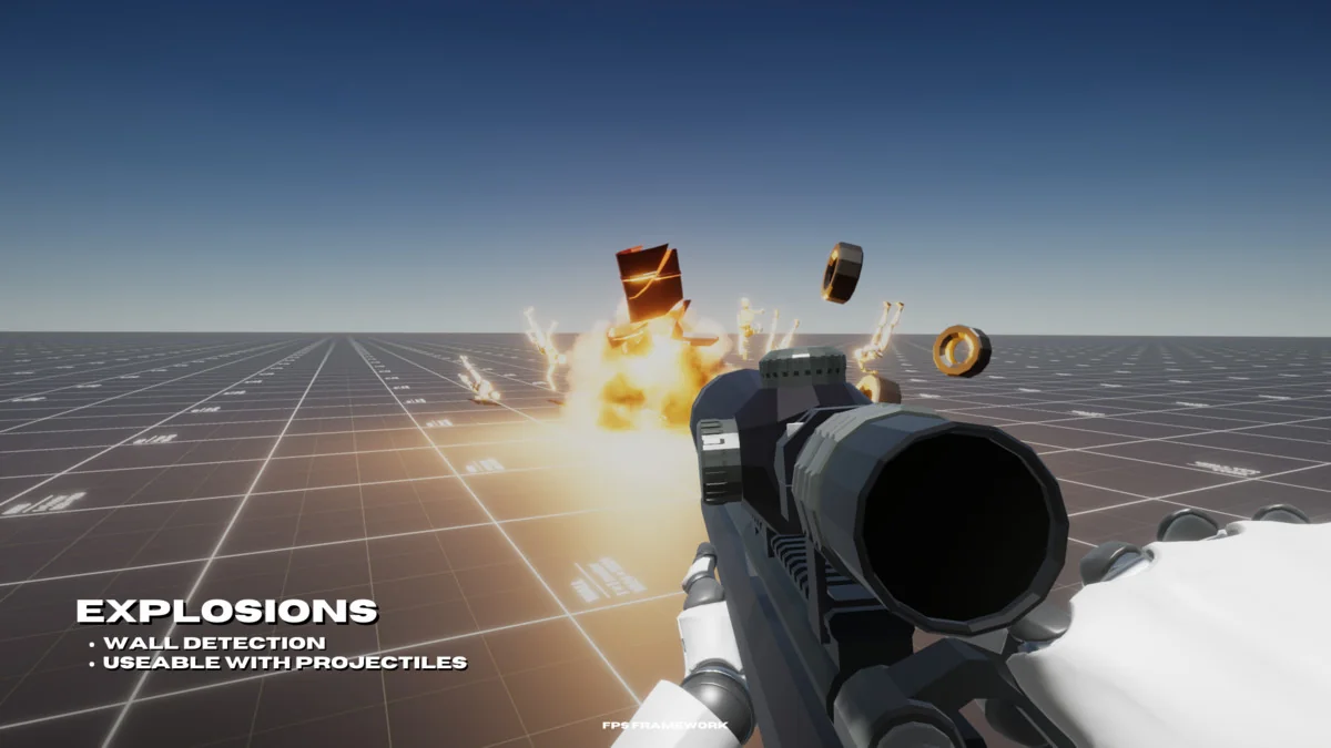 The system also includes a modular attachment framework. Attachments can be added to weapons through a quick process, and these modifications directly affect the gun’s performance and behavior based on the developer’s specifications. This allows for a high degree of weapon variety without requiring unique scripts for every individual firearm configuration. Additionally, the firearm system supports explosive projectiles. This capability allows for the creation of heavy weaponry, such as rocket launchers, where projectiles trigger modular explosion systems upon impact. These explosion systems are designed to be both visually accurate and mechanically functional within the game world.