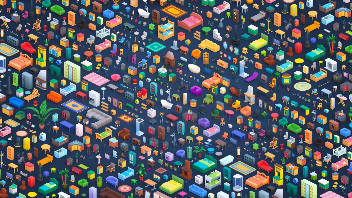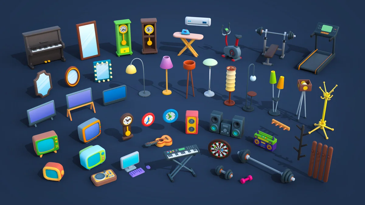 - Bathroom (112 items): This extensive sub-set includes essential fixtures and small details such as bathtubs, mirrors, showers, and washbasins, alongside smaller props like hair dryers, loofahs, mixers, plungers, scales, soap, and slippers. Even functional appliances like washing machines are included.