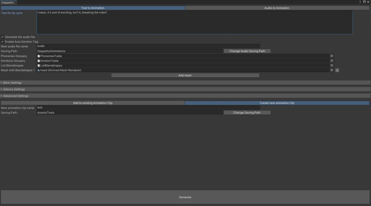 Geppetto is an animation tool designed to simplify the creation of realistic lip-sync and facial movements within Unity. By utilizing advanced AI algorithms, the system processes audio or text files to automatically generate animations that align with the specific timing and tone of a character’s speech. This automation allows developers to bypass the manual labor of keyframing every mouth movement, focusing instead on broader creative aspects of the project.