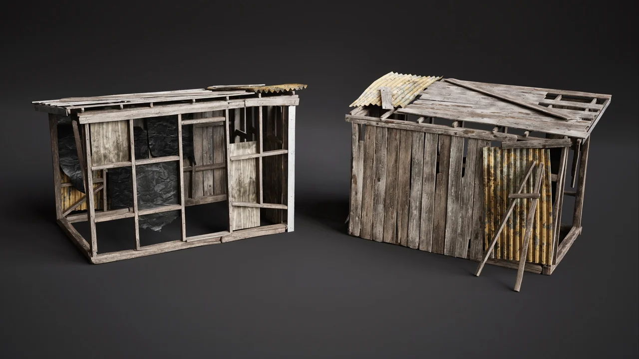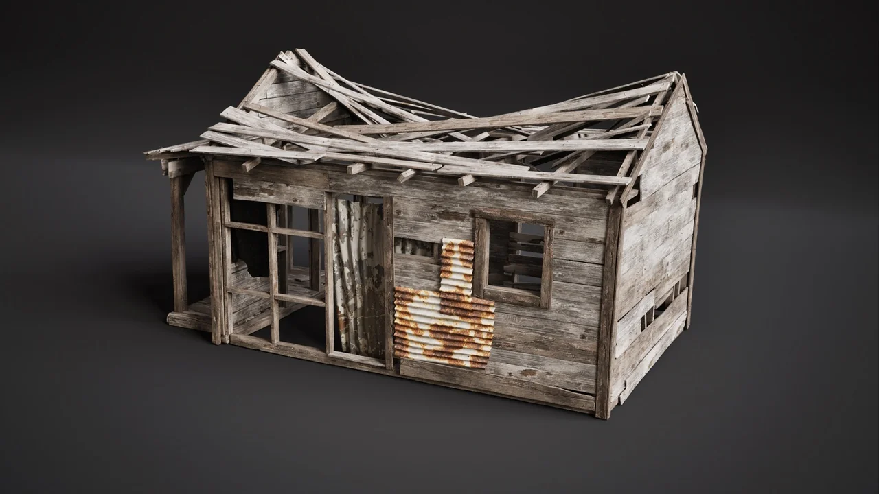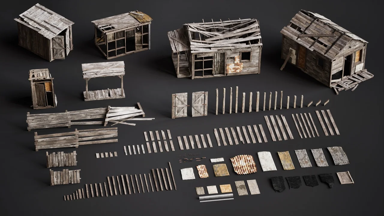 The core of the Ghost Town VOL.1 pack is its sheer variety. With 176 detailed meshes included, developers have access to a wide range of structures and props to fill their scenes. The pack focuses on the rustic, decayed aesthetic of rural architecture, featuring: