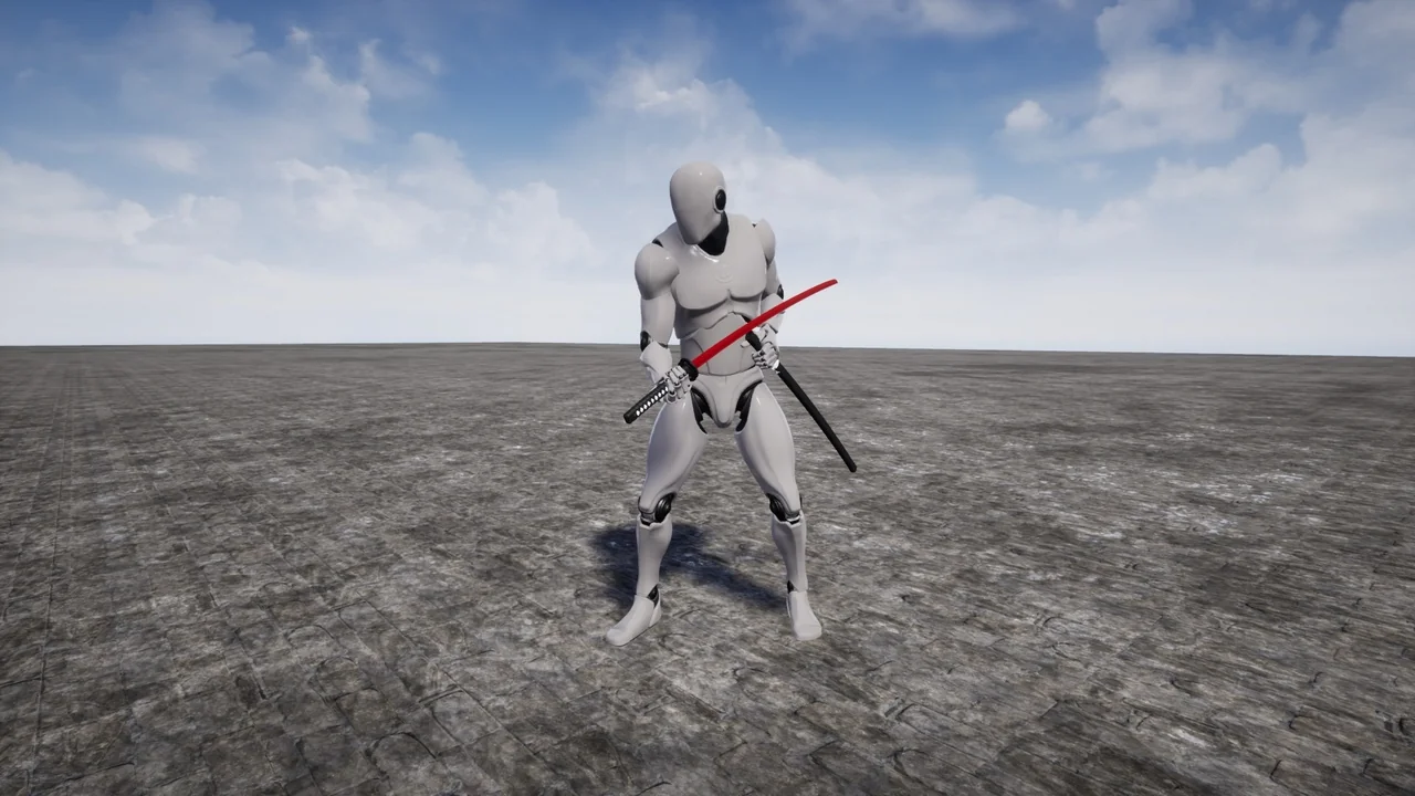 The entire system is built on the industry-standard Epic Skeleton. This design choice makes the animations highly versatile for various character models. In addition, the pack includes simple 3D meshes for a Katana and a Scabbard. These assets serve as excellent placeholders or final models for your game project. Because they are optimized for performance, they won’t weigh down your engine.