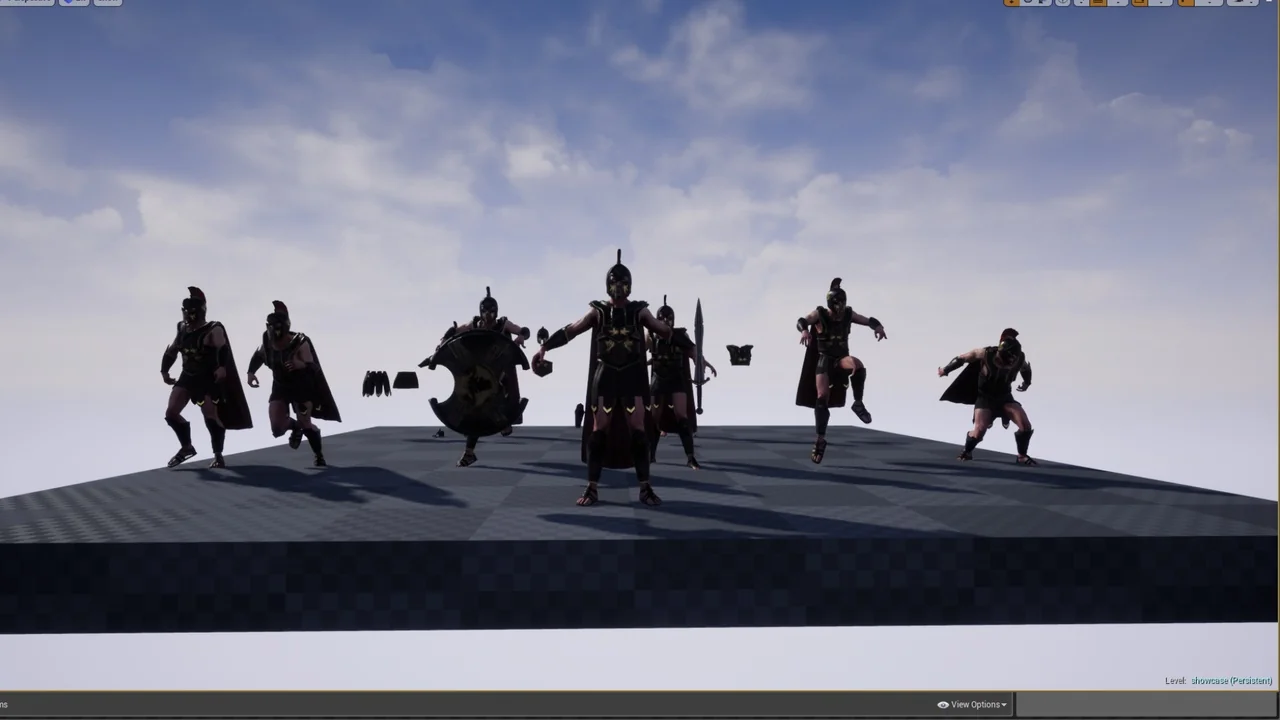 The character is built to work with the Epic Skeleton. Consequently, this makes it very easy to retarget existing animations. You can quickly apply standard movement sets to the warrior. However, the developer did not stop there. They also added specialized bones to enhance the character’s movement.