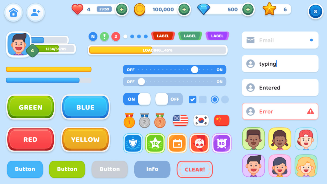 - • This is a GUI skin that comes with a demo scene and Prefabs.
