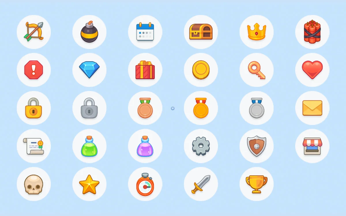 The GUI – BlueSky pack is rich with content, featuring over 490 PNG sources. This includes a wide variety of 195 pictogram icons available in two sizes: 64×64 and 128×128. Additionally, the developer has included 29 unique item icons in higher resolutions of 256×256 and 512×512.