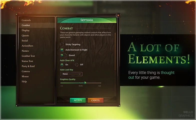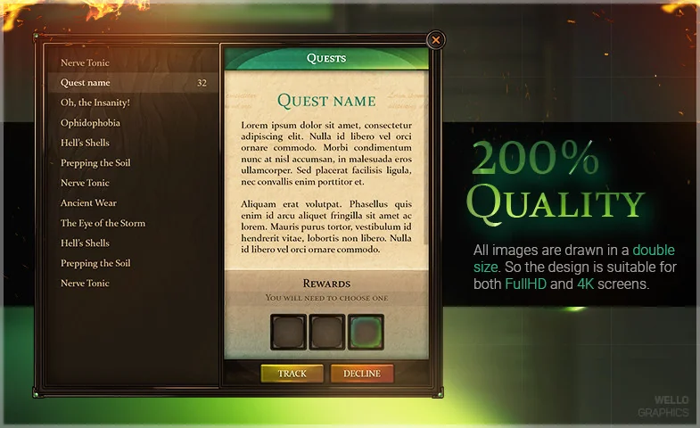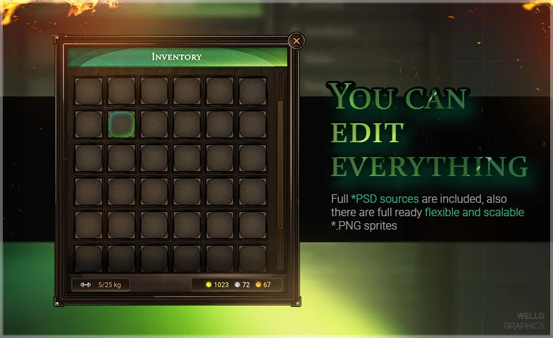Moreover, the graphics are created at 200% quality. This ensures the design remains crisp on both Full HD and 4K resolutions. Despite the high visual fidelity, the asset remains incredibly lightweight. For instance, all sprites take up no more than 6 MB in PNG format.