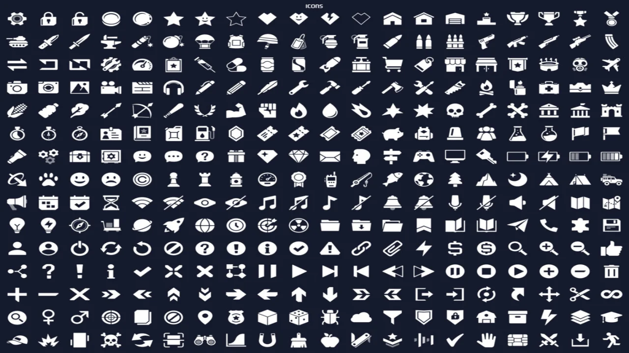 - • Various pictogram icons and item icons provided