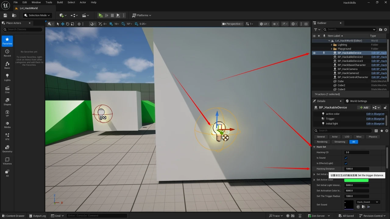 - Hackable Cameras: Look at a camera and press F to take control. Automatically enable or toggle hacking skill (Z). Follow mode (X) and return position toggle (C). Adjustable FOV and angle limits. Expandable camera control/exit events in Level Blueprint.