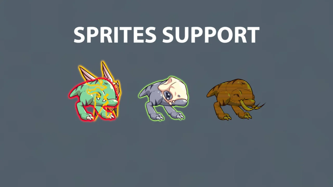 – Outline: 4 quality levels including mesh-based instancing rendering and screen-space with optimal blit region. Customizable color, alpha, width, gradient, visibility options (normal, always in front, behind) and more.