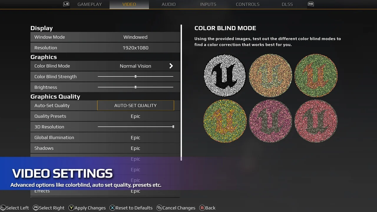 - Advanced video settings with auto-set quality, presets, and colorblind modes