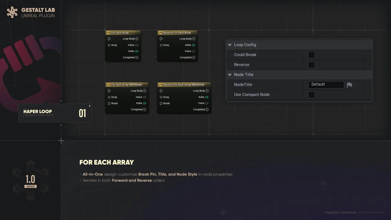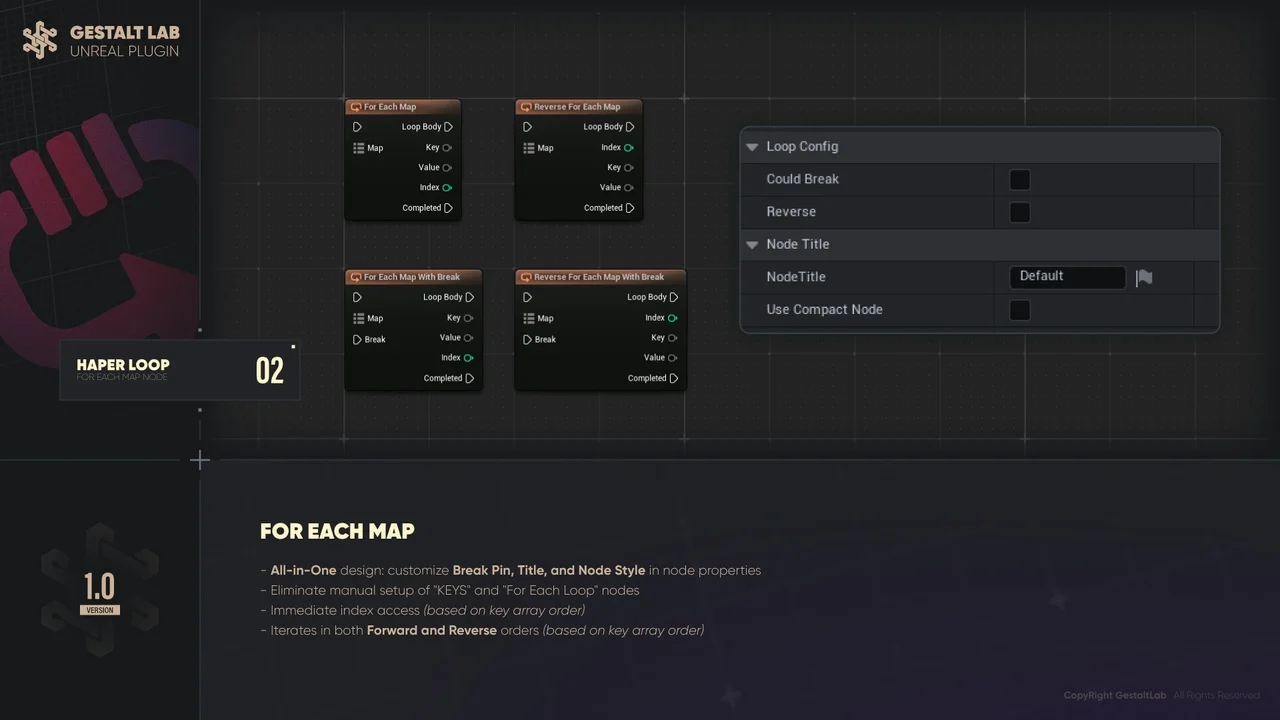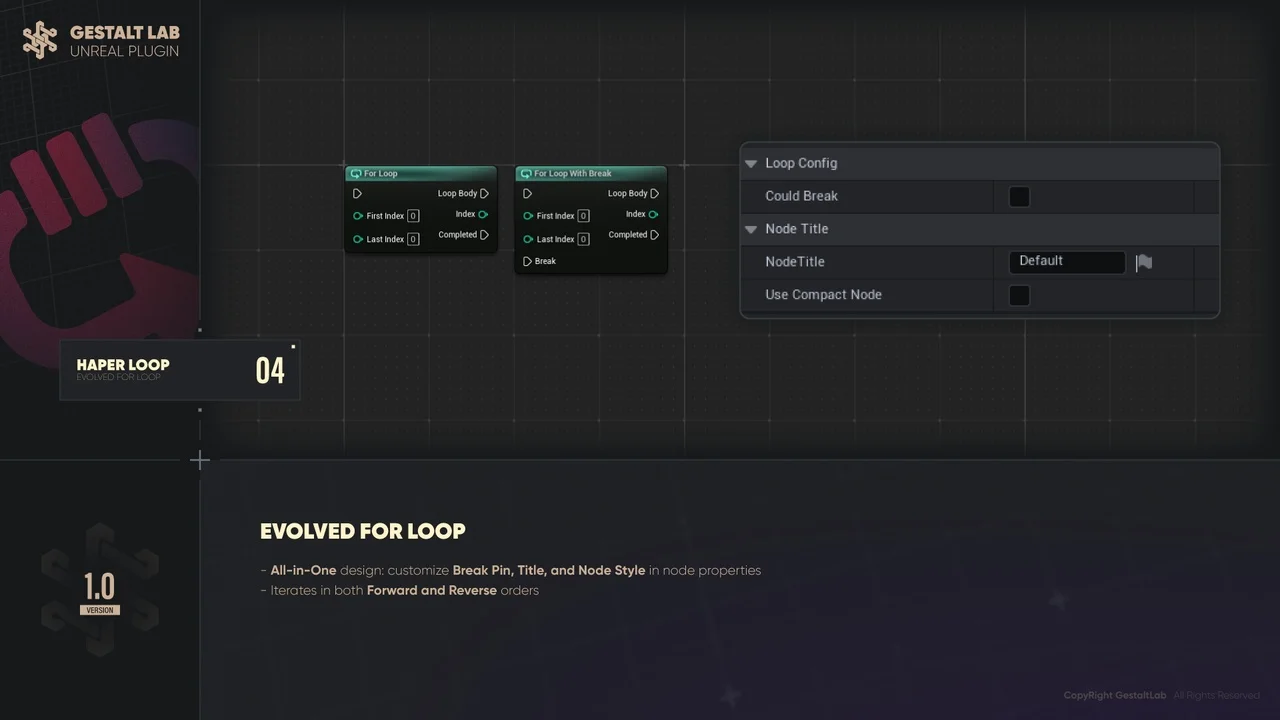 - Smart Node Consolidation SystemCombines repetitive loop nodes (Standard/Break/Reverse) into intelligent modules. Switch execution modes via visual panel, reducing node count while maintaining logic clarity.