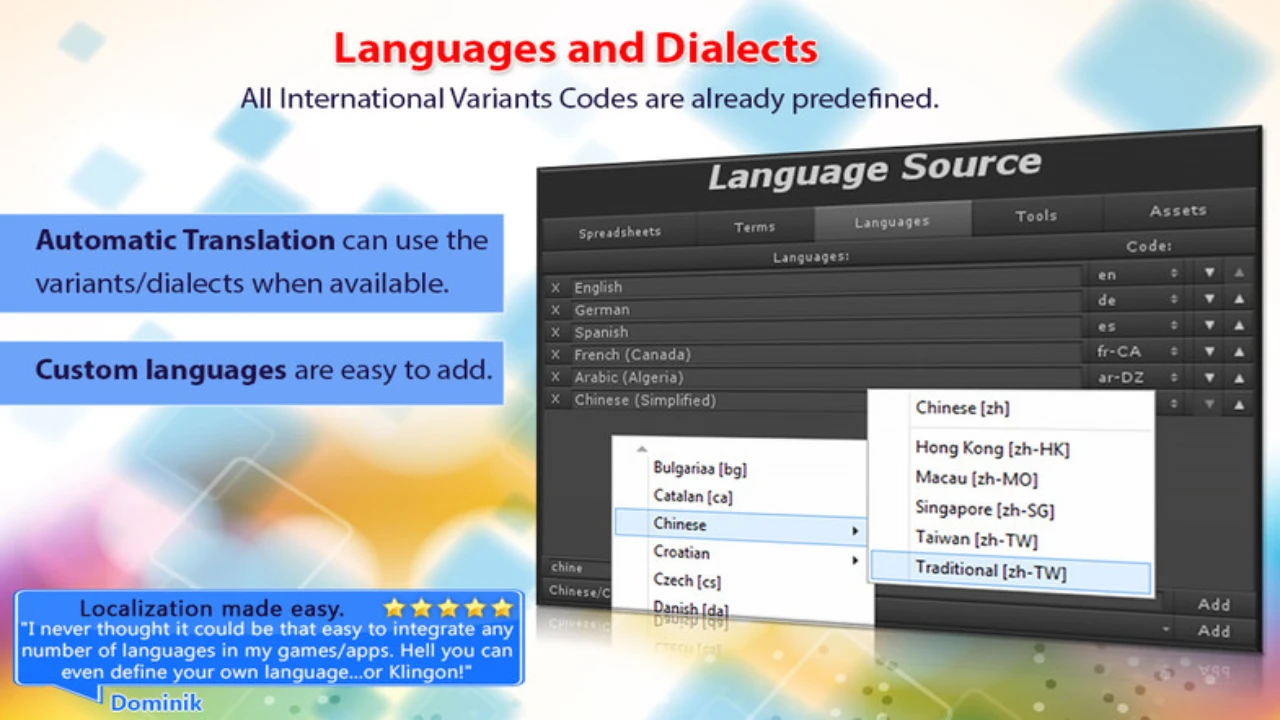 - Compile Time Checking Bake translations into script constants to avoid Typos when accessing them on the code.