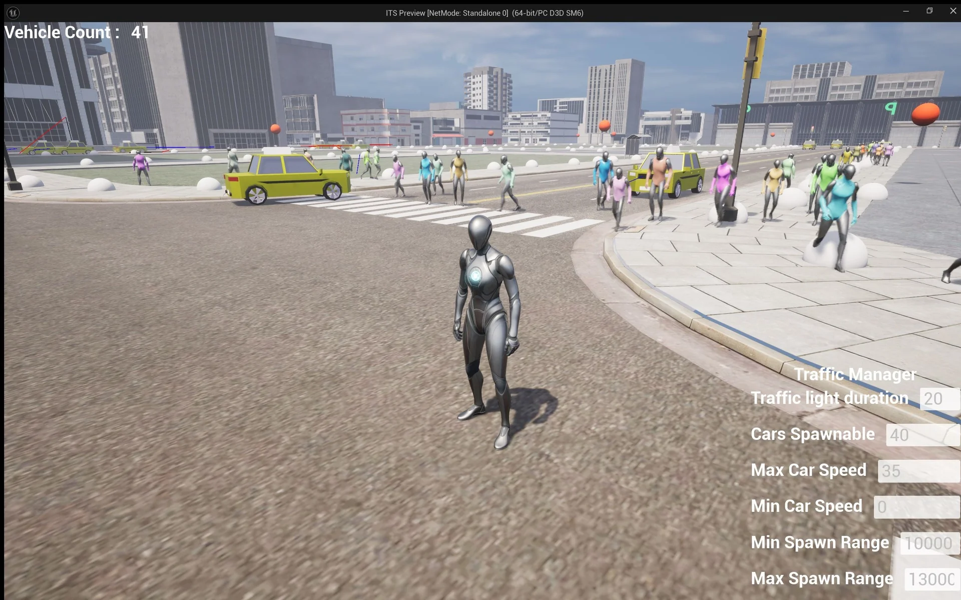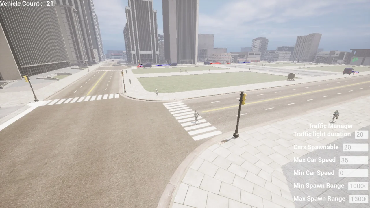 A city is not complete without pedestrians. Therefore, this system includes a fully functional traffic light and crosswalk setup. Pedestrians intelligently follow traffic rules to ensure safety. For example, they will wait at crosswalks until the light turns green. Meanwhile, vehicles stop at red lights to let them pass. This interaction creates a convincing urban flow.
