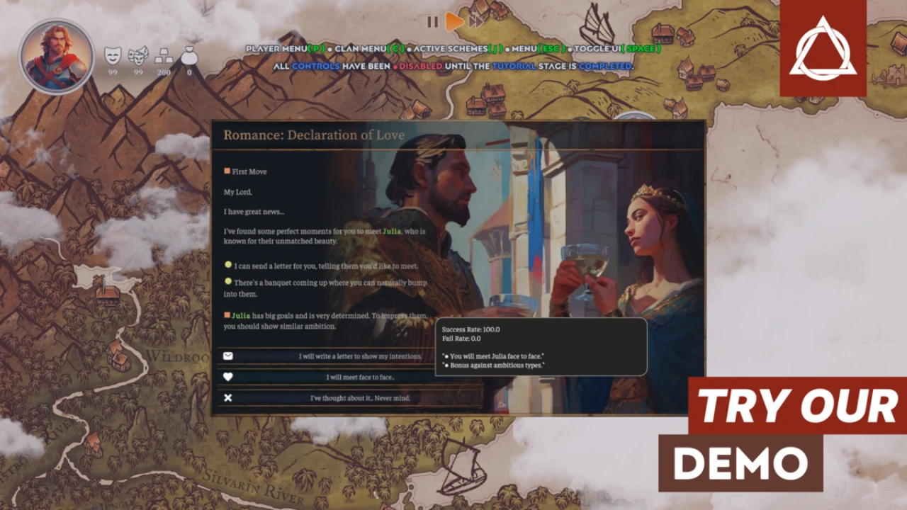 Intrigues allows AI characters to execute schemes against each other or the player. Explore AI behaviors in the DEMO to see how they add depth and intrigue to your gameplay.