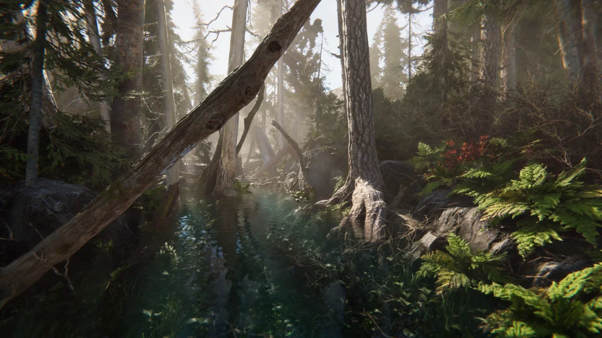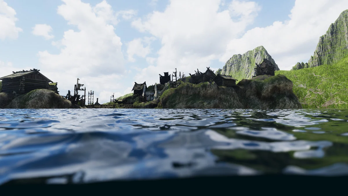 The water rendering uses a physically based lighting model together with FFT wave simulation. Real-world parameters such as wind speed, turbidity, and transparency drive the look of the surface, which is why the water is intended to remain visually consistent in different lighting situations. The same rendering model is meant to hold up during day or night, in sunlight or shadow, and even in enclosed spaces like caves.