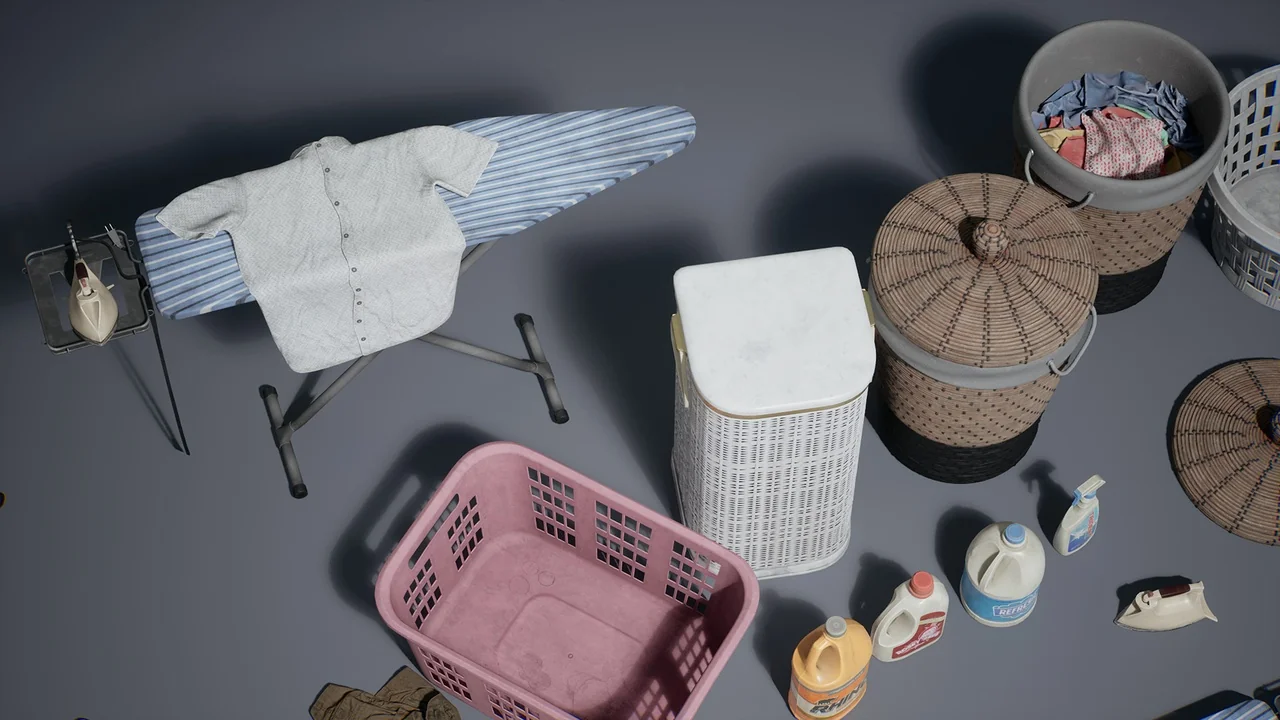 Creating believable indoor spaces requires great attention to detail. A laundry room is a staple of modern domestic life in any digital world. This asset pack provides everything you need to build a realistic home laundry scene. The collection includes 70 unique meshes that cater to various environment needs.
