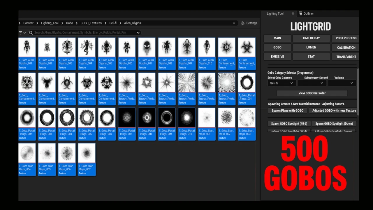 - GOBO system with searchable/sortable gobos and in-scene adjustments