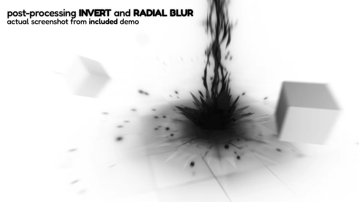 - Grayscale Invert and Radial Blur post-processing shaders and materials