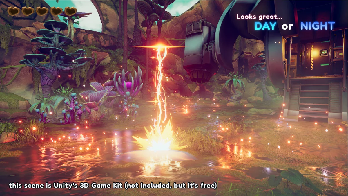 The package centers on one lightning prefab and a mobile variant. Inside that setup are 22 unique sub-systems that can be configured, so the effect is not locked into a single static look. Unity’s native particle system is used to set up nearly every part of the effect, which means the structure stays editable rather than closed off behind a fixed animation.