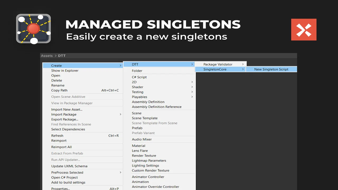 Managed Singletons is a Singleton code suite designed to provide the necessary Singleton functionality and eliminate common problems DTT encountered while working with them. As a whole, this suite can save you dozens of hours worth of debugging and testing.