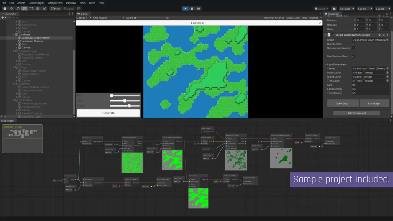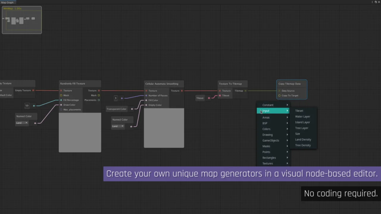 Create unique level generators, perfectly tailored for your game. A visual editor makes this a quick, easy and flexible process. Map Graph is the ultimate solution for all your level generation needs!