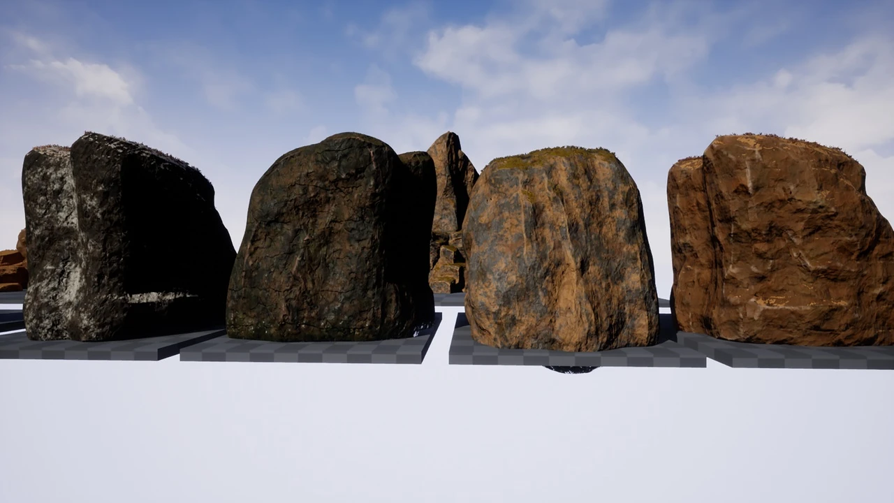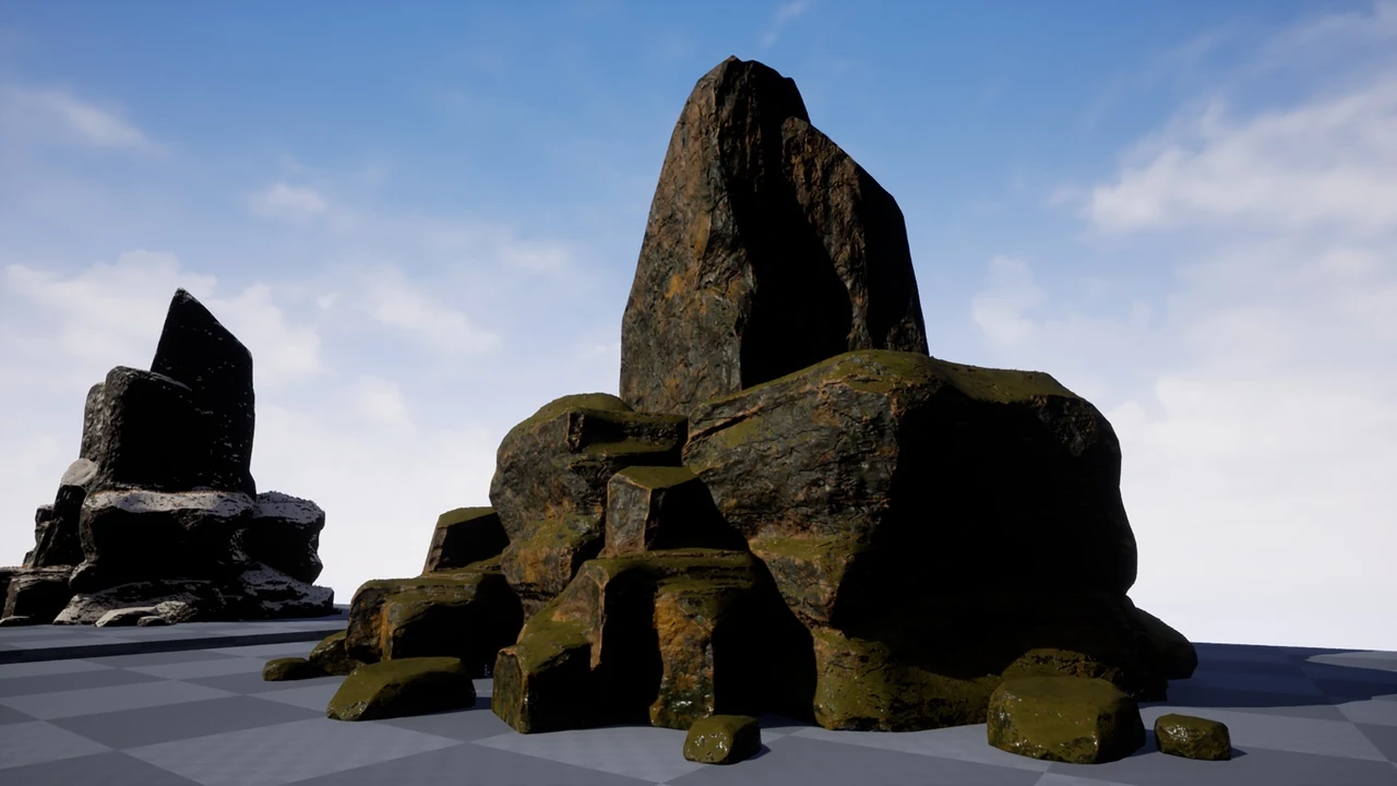 With the help of this pack, you can change only 2 textures in a material instance to create quick variations of stones, ledges, and other objects based on texture baking technology. Using the RGB texture mask and baked normals texture you can easily adjust the material variation to your liking within the capabilities of this shader.