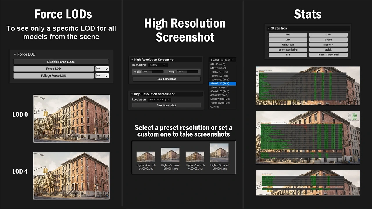 Take full control of Unreal Engine’s most advanced features with dedicated, easy-to-use sections for:- Nanite & Lumen: Visualize and debug your Nanite meshes and Lumen lighting with a single click.