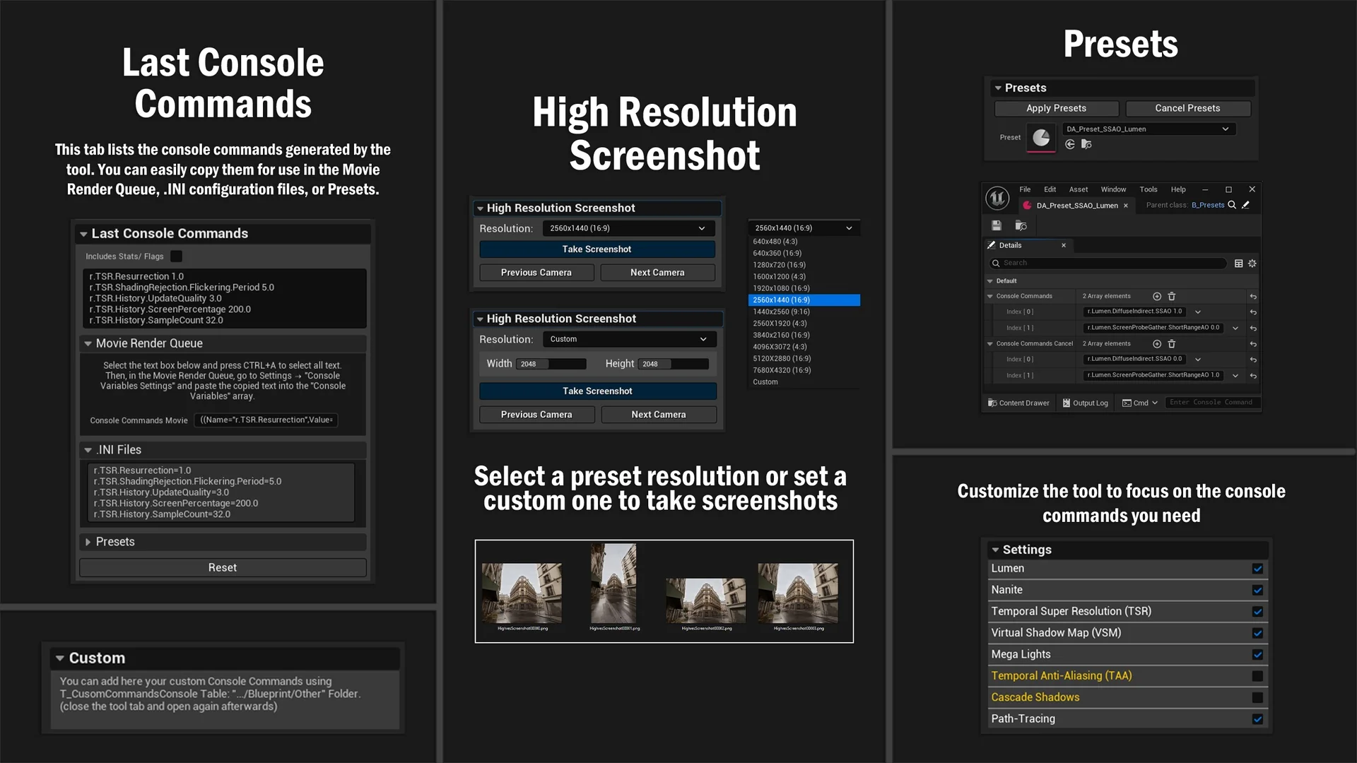 Master Console Commands is a powerful Editor Utility Tool designed to help developers execute console commands in a highly efficient and visual manner. This resource is particularly useful for debugging, optimizing, and testing complex projects. Consequently, users can easily inspect the type of data being processed in a scene while diagnosing unexpected results or errors.
