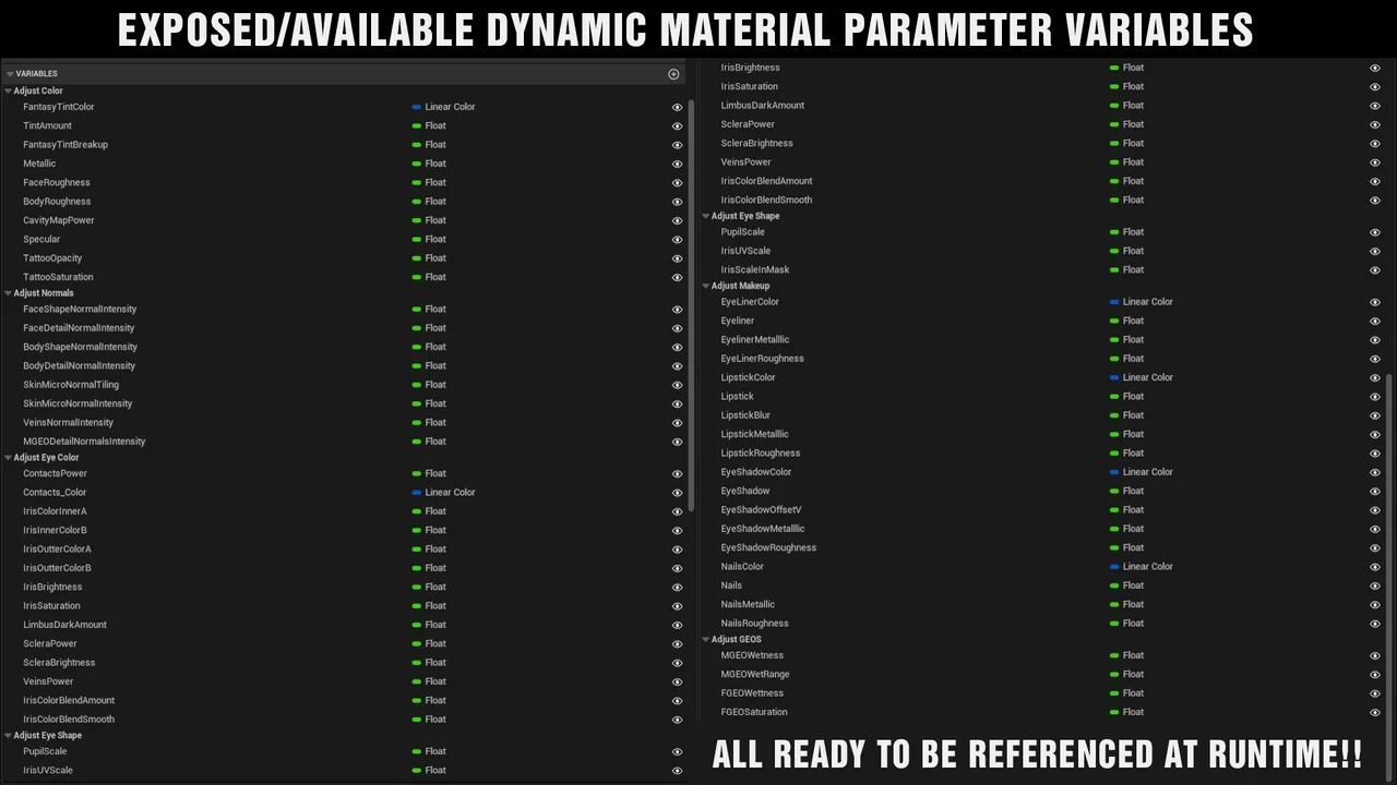 For projects that need live control over roughness, tint, tattoos, makeup, and facial presentation, the strongest takeaway is clear. This system is built to make imported Daz3D characters easier to manage as game-ready assets while keeping changes centralized, consistent, and fast to apply.