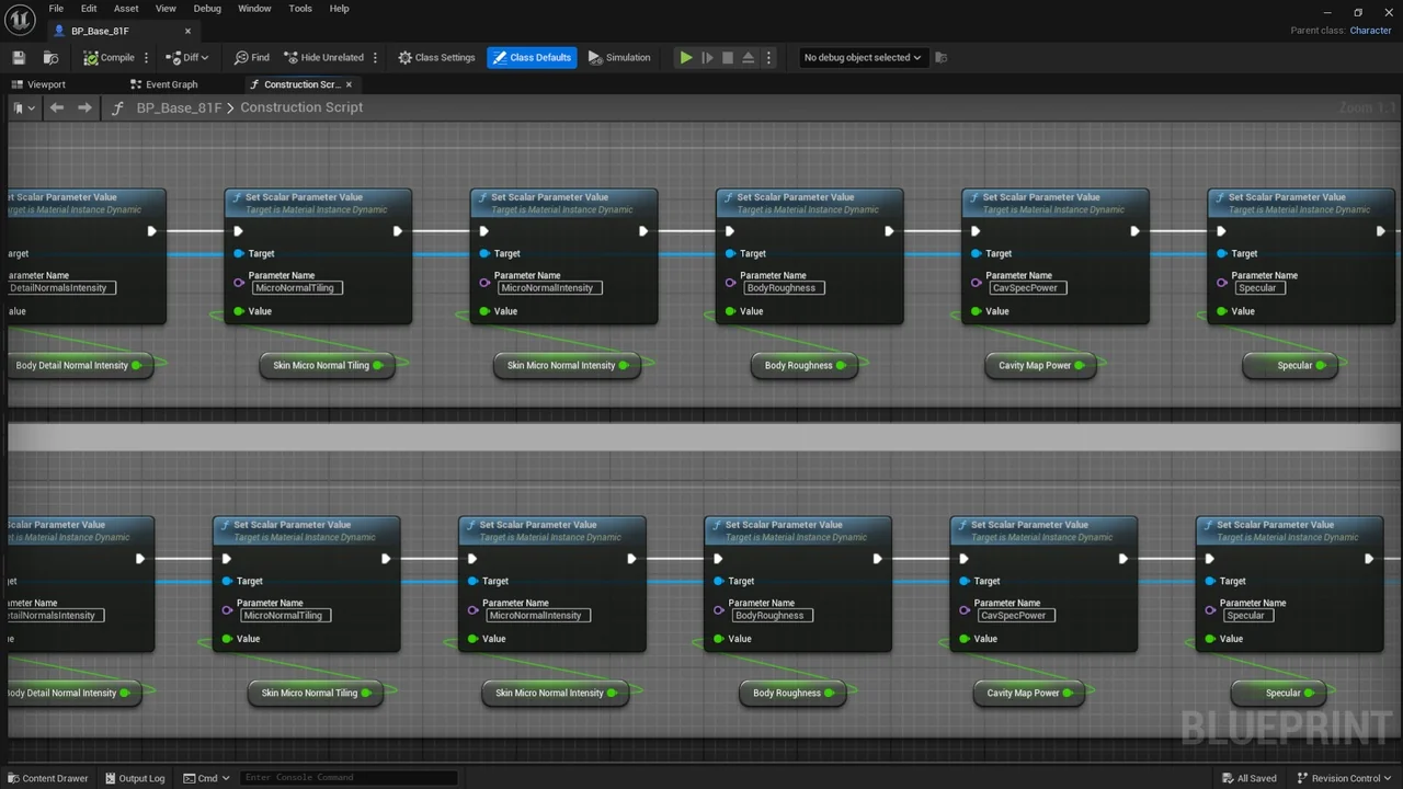 Imported characters gain a more flexible presentation layer with this system, which is built for real-time use in games. The setup includes a blueprint structure that allows material parameters to be adjusted at runtime, so character appearance can change on the fly instead of being locked in before play begins.