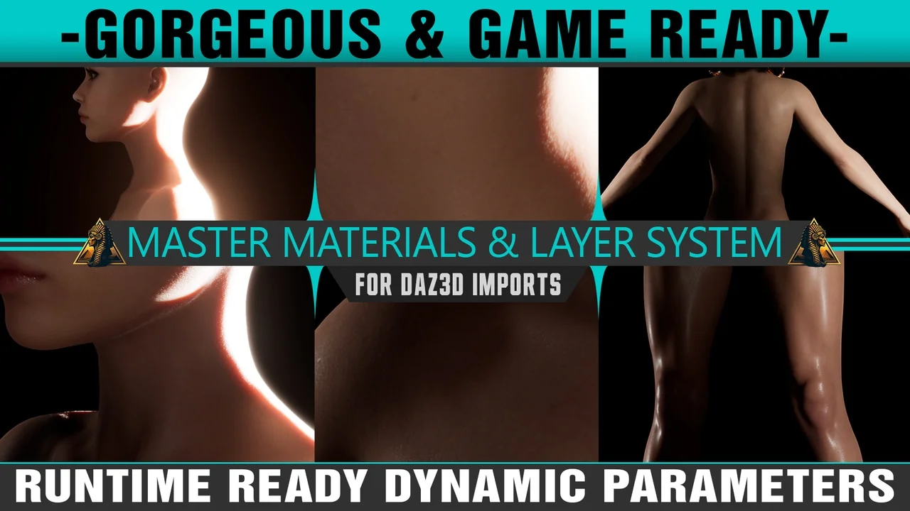This system is positioned as the game-focused counterpart to the earlier Materials Conversion and Layer System for Daz3D Imports. The earlier system remains the base materials and layers setup for people who want to build their own dynamic parameters and blueprints. This version goes further toward game use by providing the dynamic pieces up front.
