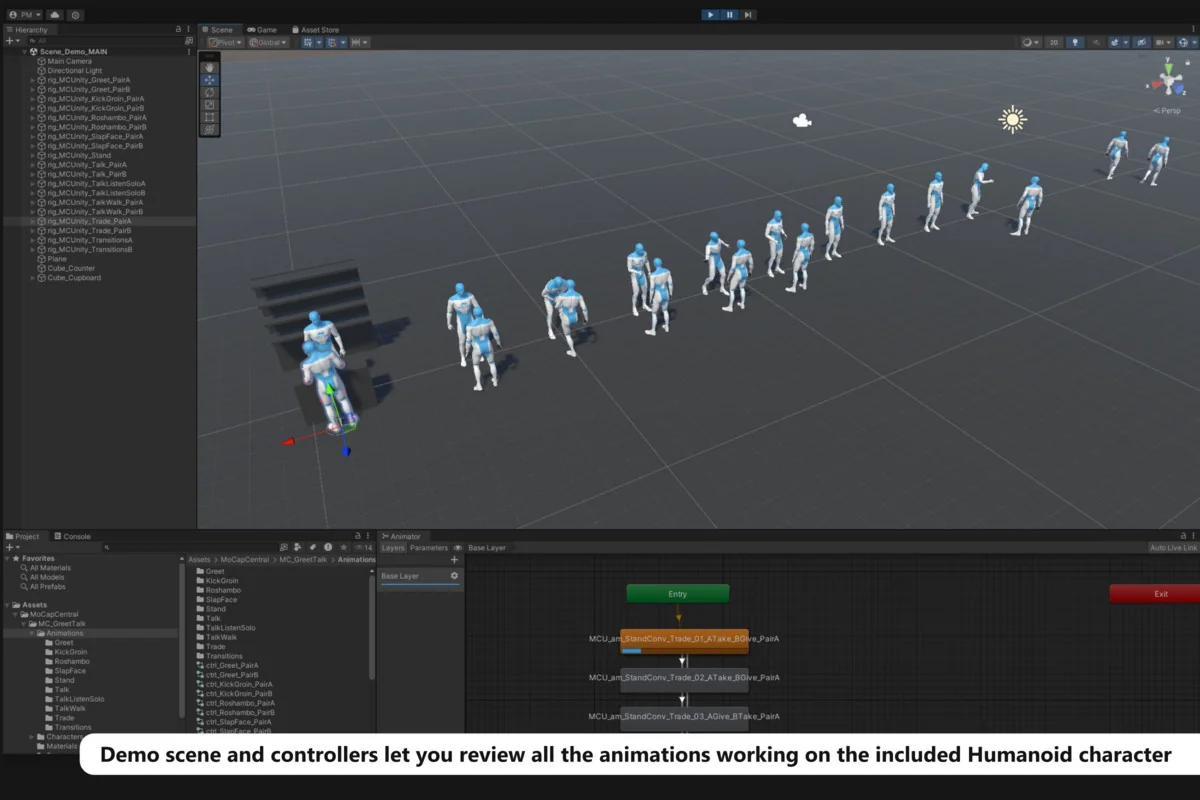 The developer has optimized MC Greet & Talk – Believable 3D Animations by MoCap Central for modern workflows. The animations are Unity Humanoid ready, allowing for easy retargeting and integration with the Mecanim system. Furthermore, the inclusion of animated fingers adds a critical layer of realism to every gesture and interaction. This level of detail is necessary for high-quality character performances.