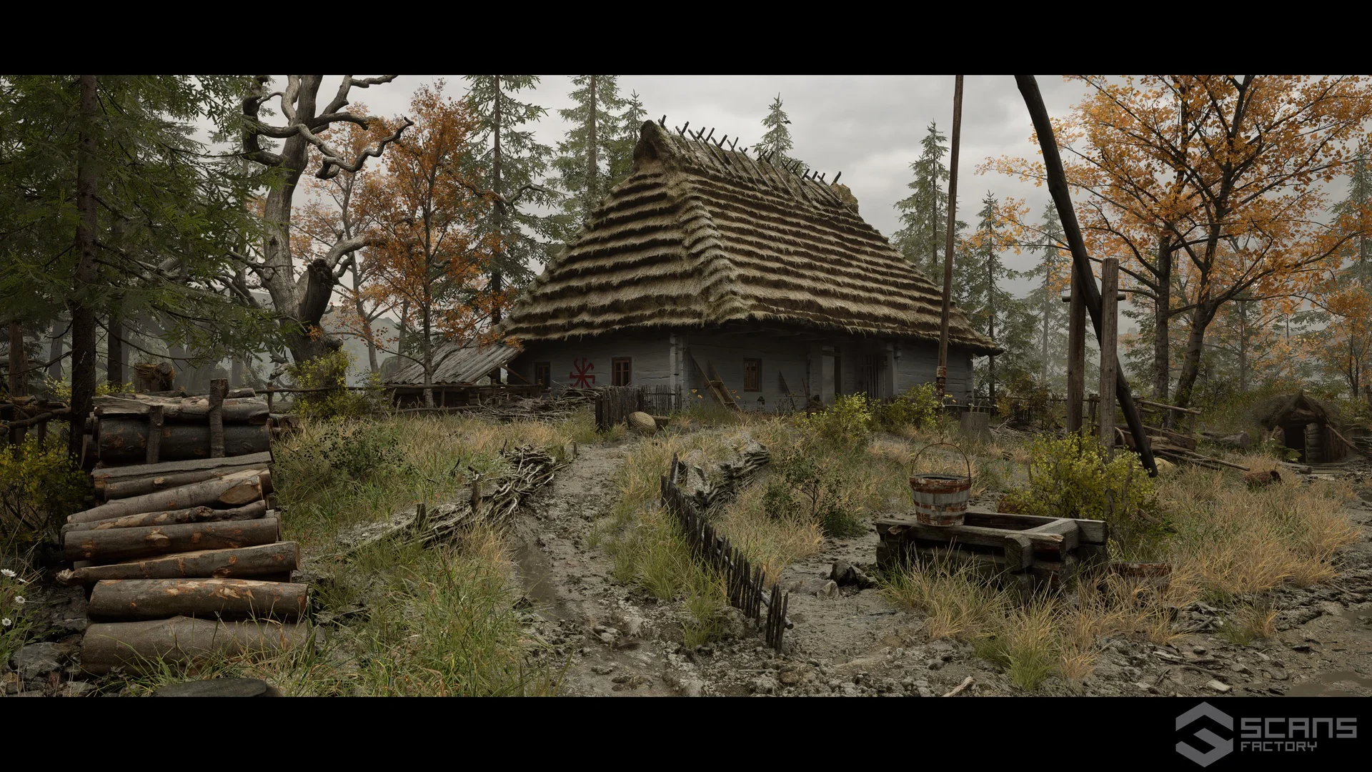 For a production that needs a compact homestead, a haunted settlement, or a village with room for mystery, the package gives a direct path into that kind of scene. The practical takeaway is simple: if the project needs a rustic Slavic village with modular layout options, atmospheric lighting, and a hidden ritual layer, this environment already points the scene in that direction.